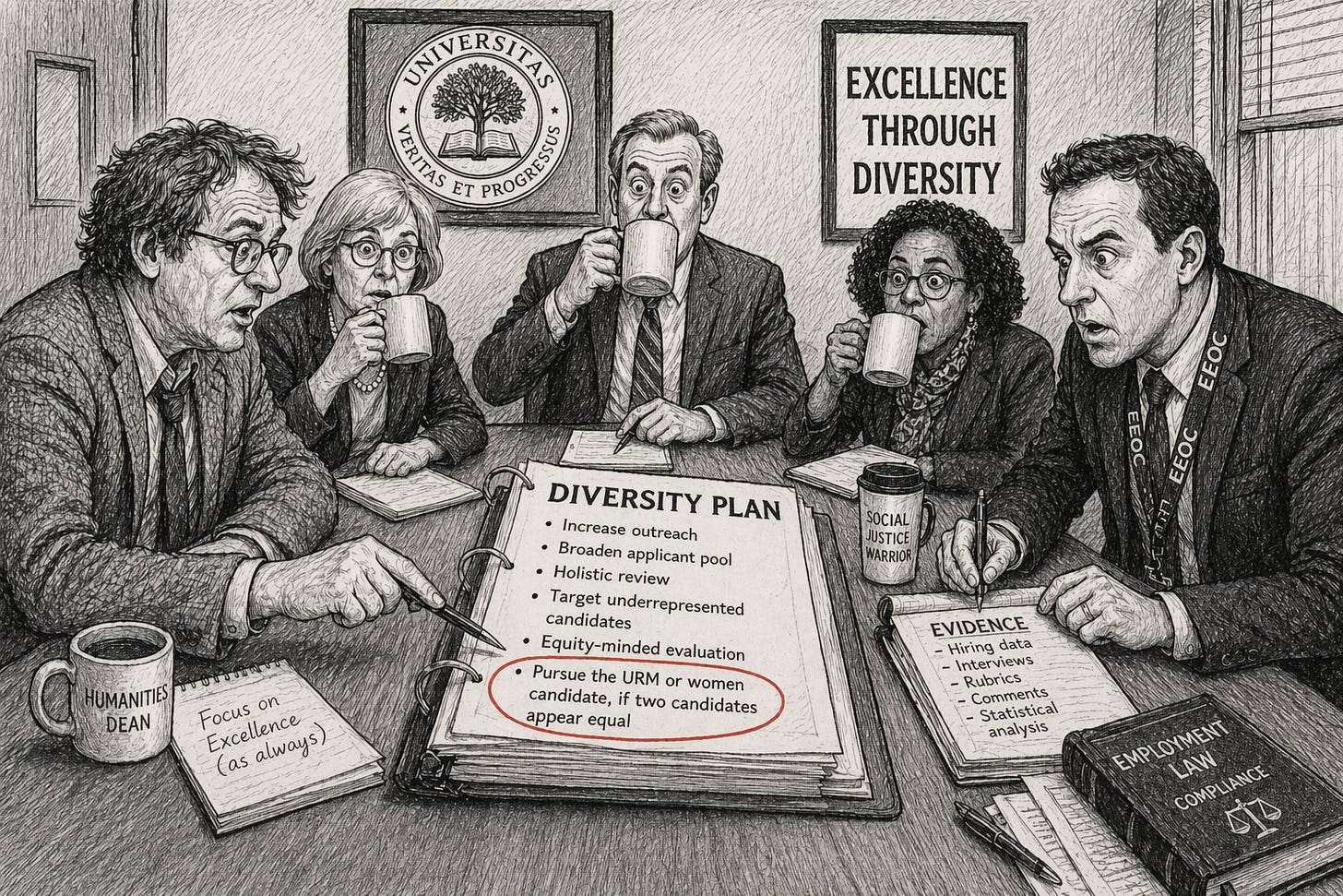 And I thought: how is that not discrimination? And then, after serving on many search committees and chairing quite a few, I recognized that committee members who want very badly to hire a nonwhite person don't limit themselves to "all else being equal". They spin the evidence any way they can to elevate the ranking of a minority candidate, and downplay the evidence for a disfavored white candidate.